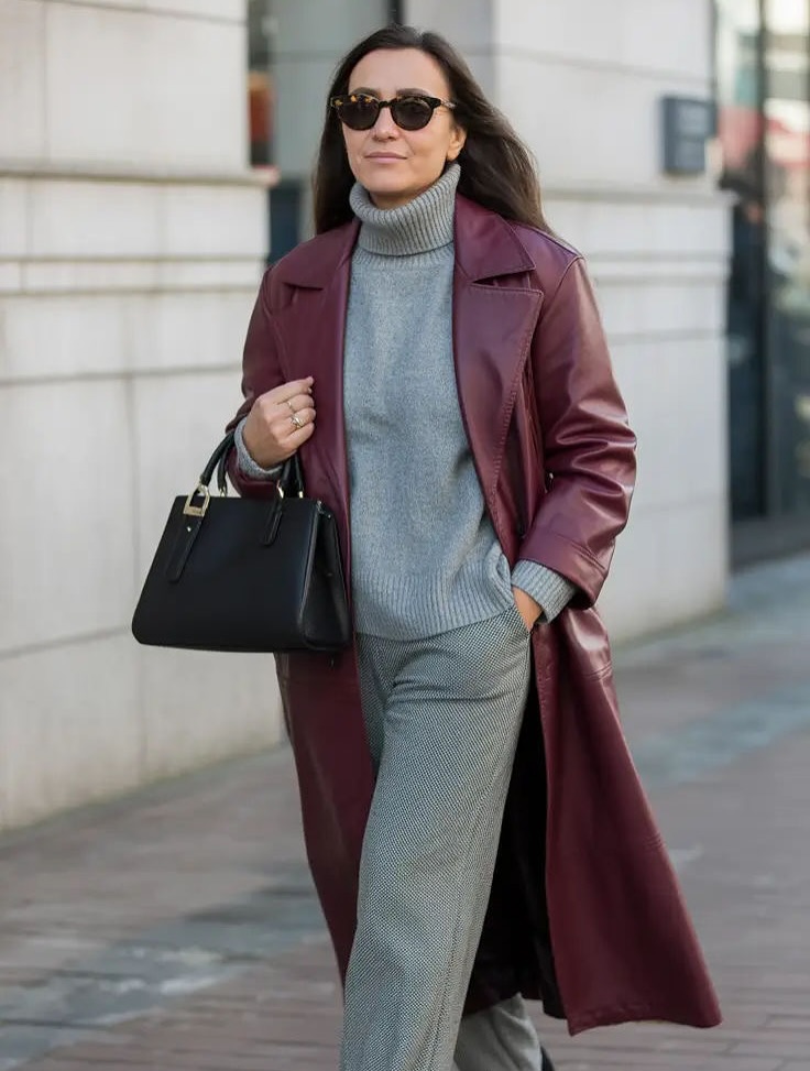 Sophisticated and unexpected. It pairs beautifully with navy, camel, burgundy, and black. Perfect for adding interest to neutral-heavy wardrobes.