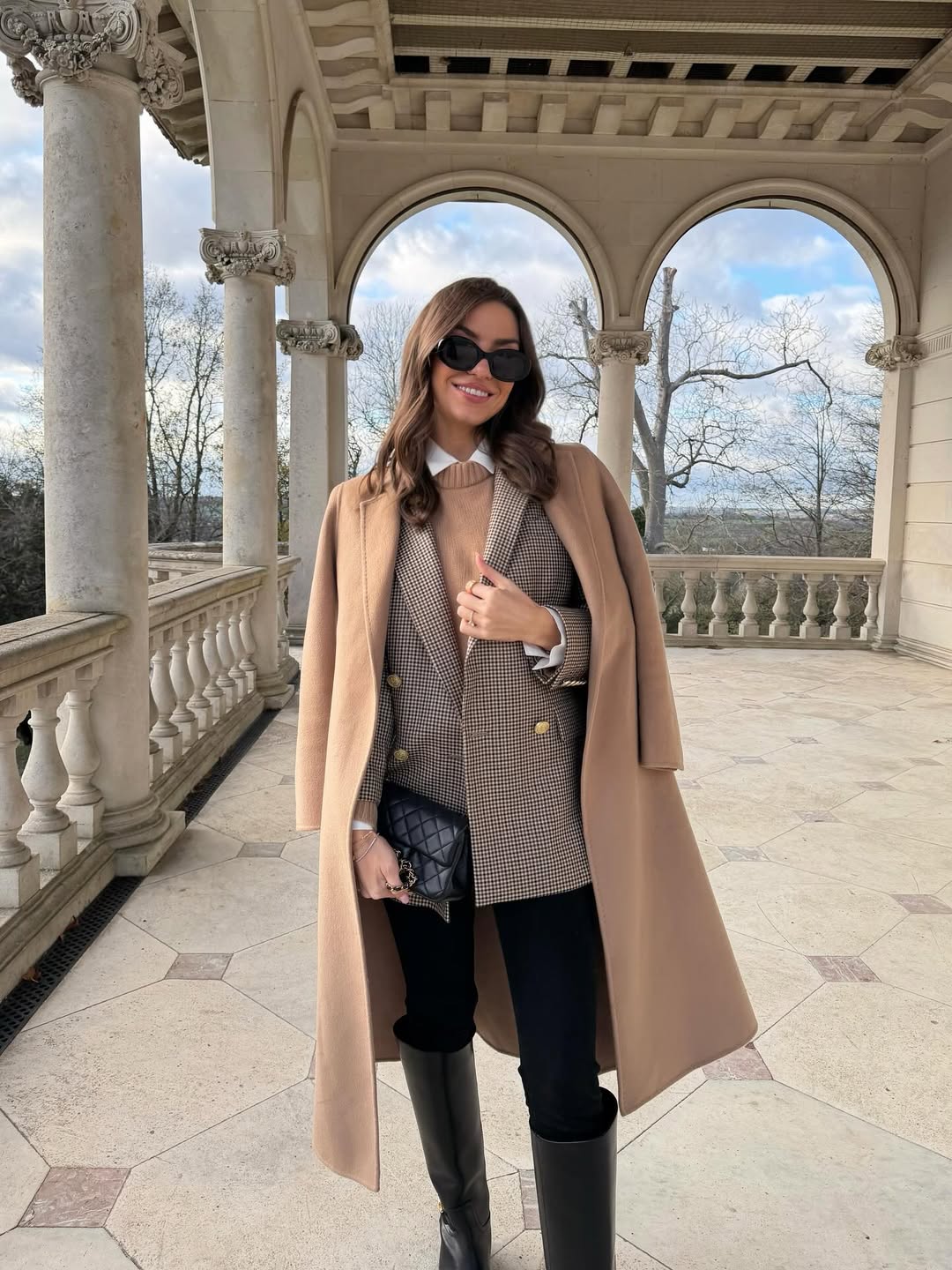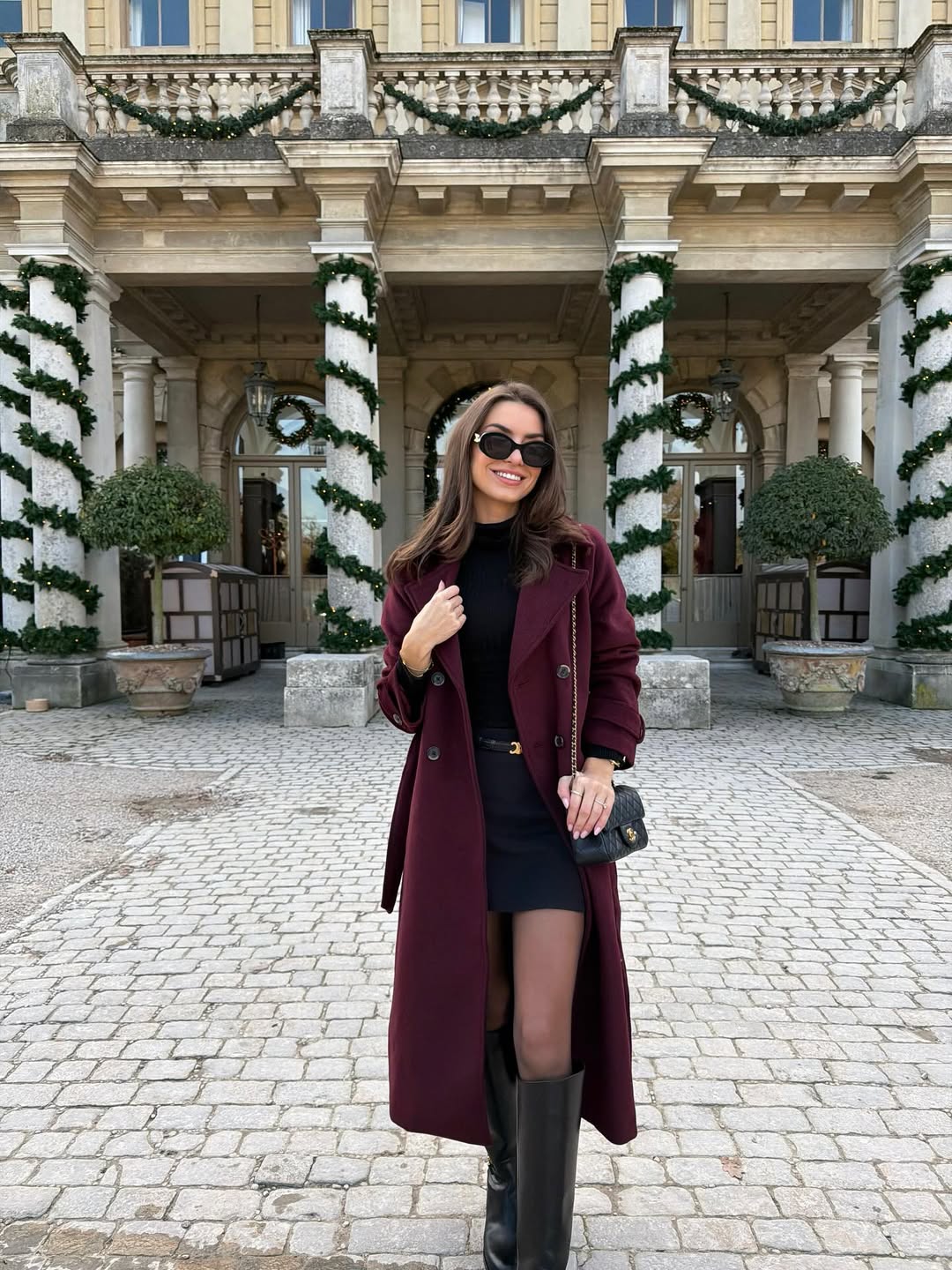 Layer a long coat over top—camel, black, Burgundy or Cream work beautifully
