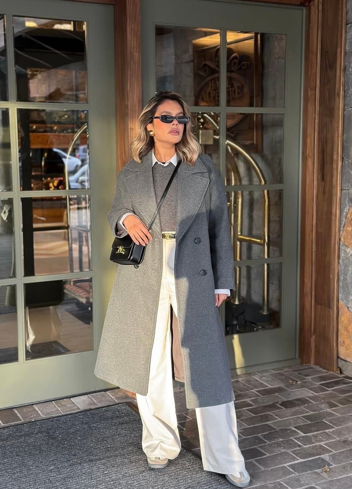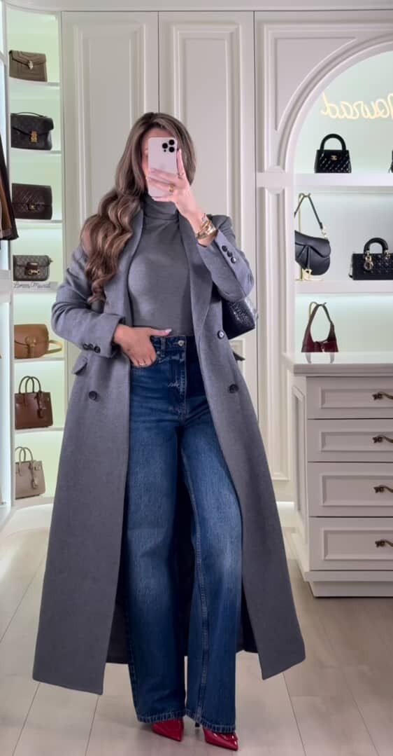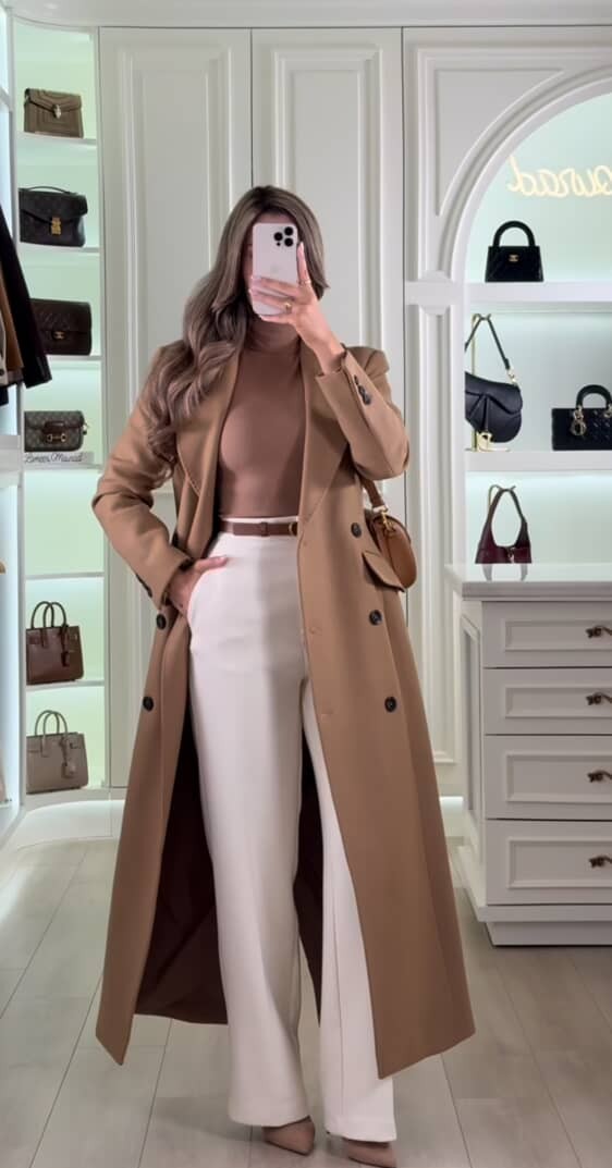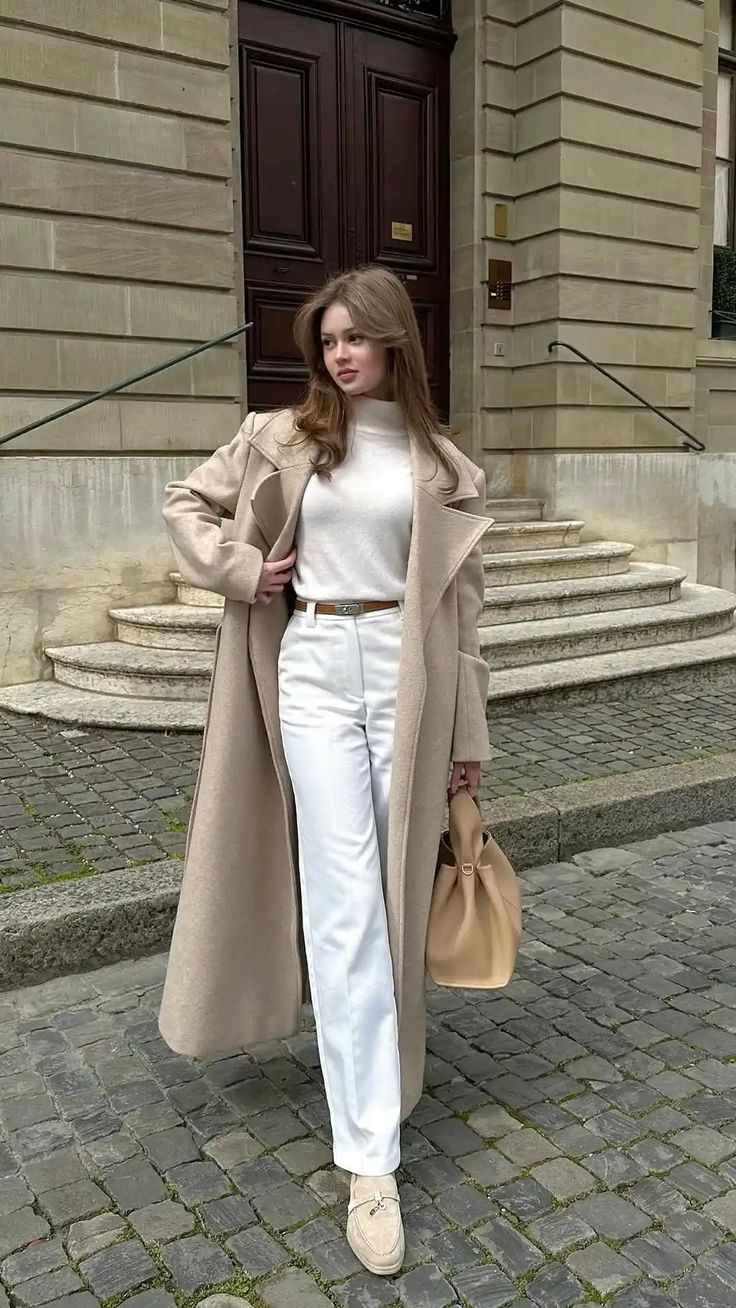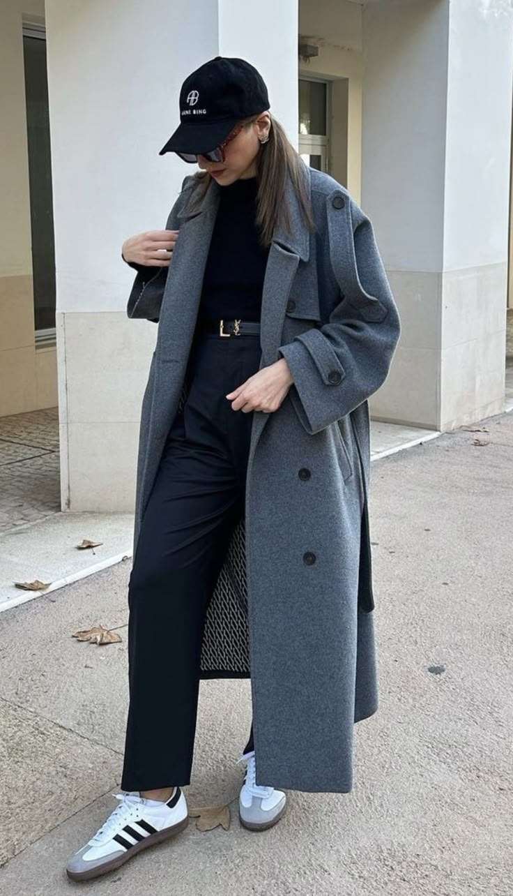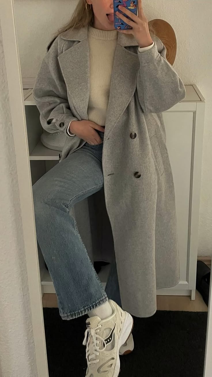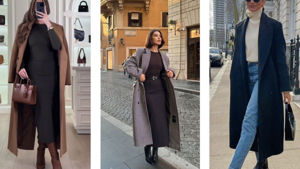 Structured coats are your best friend. Like tailored wool coats, belted trenches, or sleek puffer jackets with defined waists.