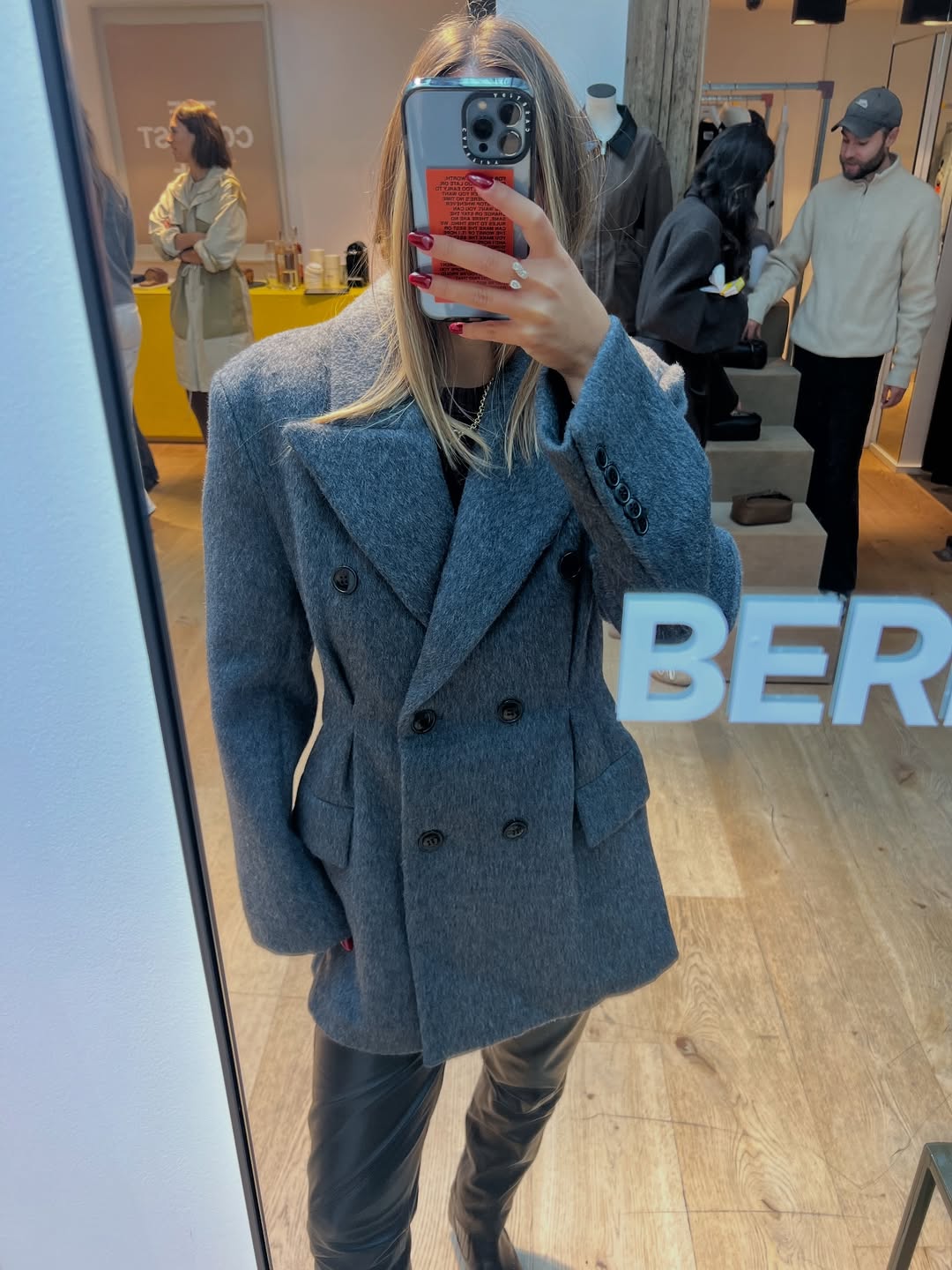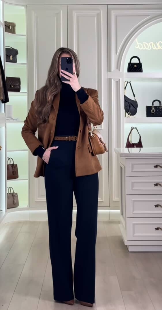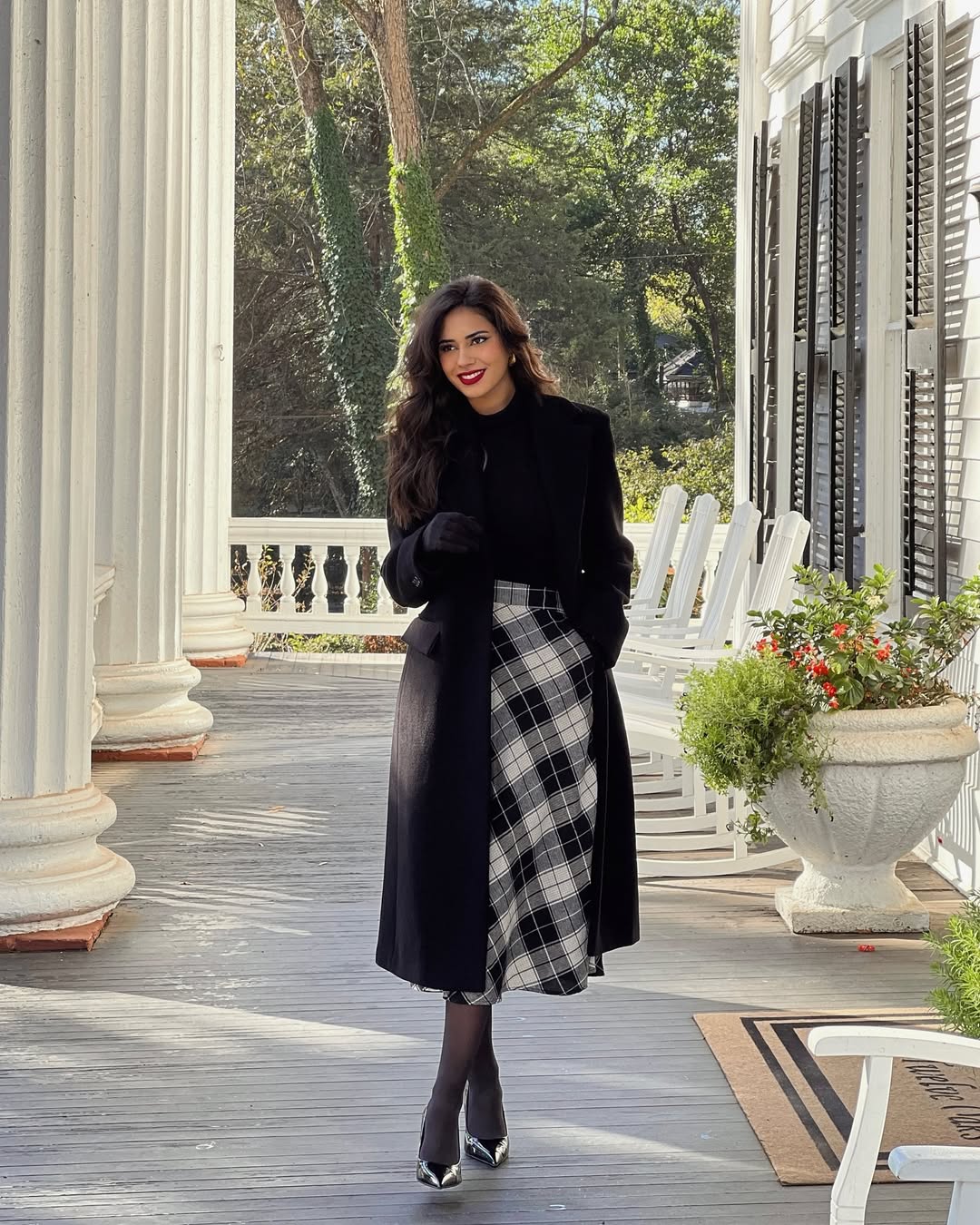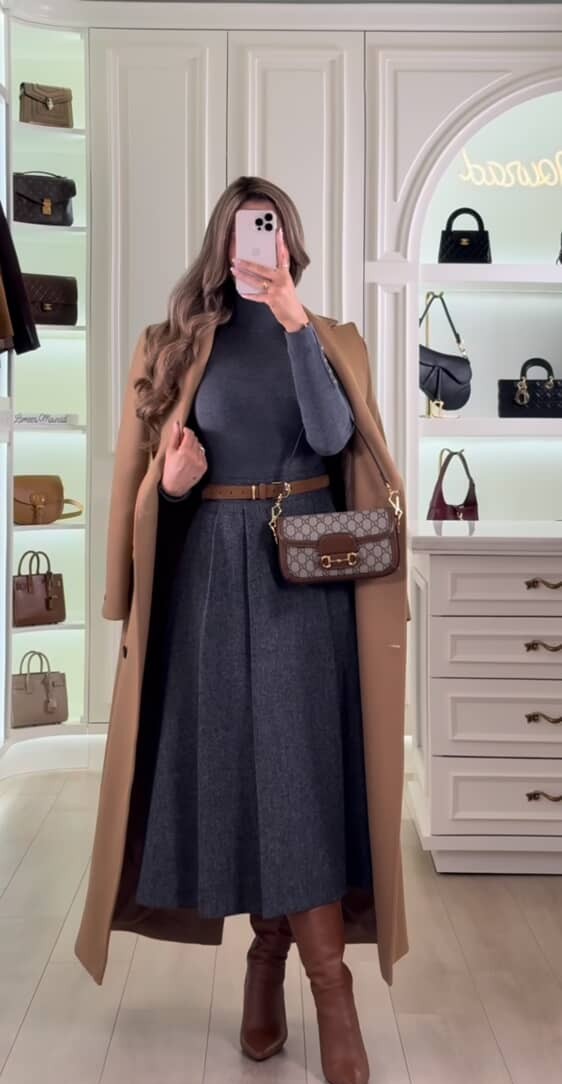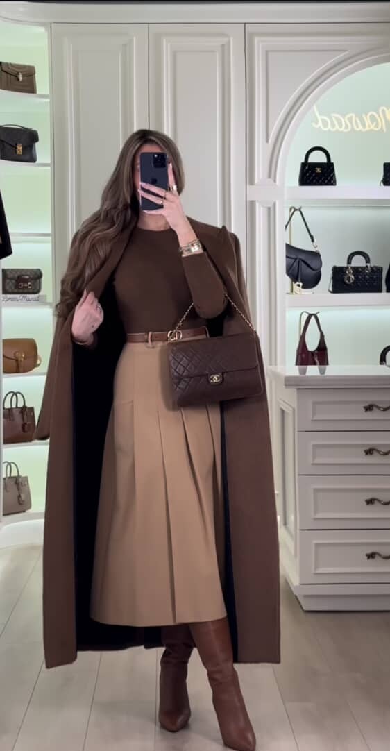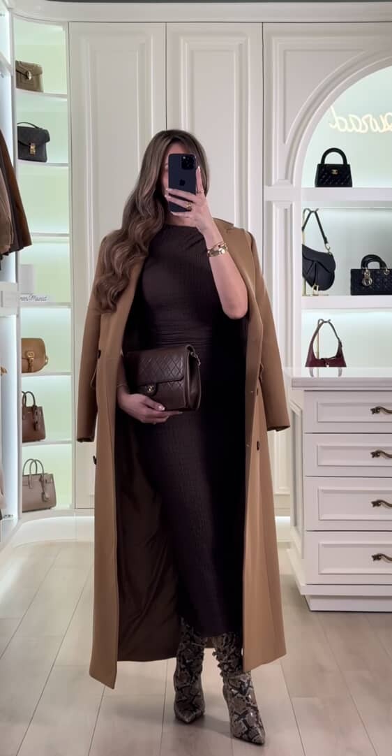 Structured coats are your best friend. Like tailored wool coats, belted trenches, or sleek puffer jackets with defined waists.