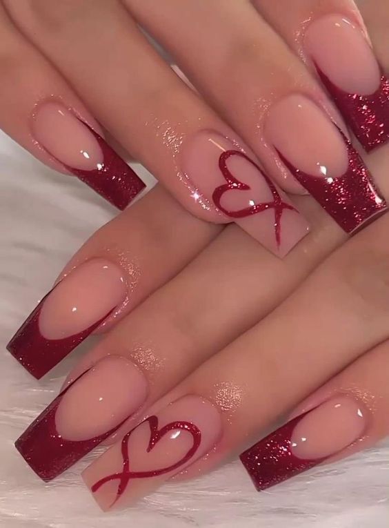 Or reverse it—red tips on a nude base for that subtle pop of romance.
